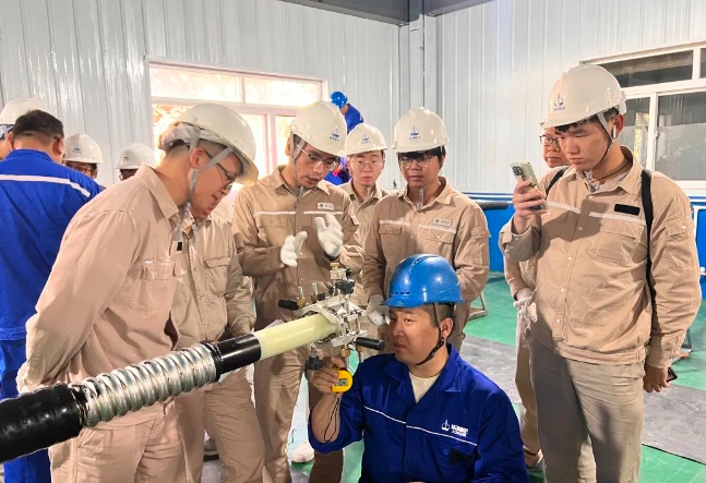 為了讓客戶更加直觀地了解產(chǎn)品制造過程,公司還專門組織參觀了生產(chǎn)車間并進(jìn)行了電纜附件安裝的實(shí)操訓(xùn)練。在教學(xué)中,由車間內(nèi)經(jīng)驗(yàn)豐富的師傅為客戶詳細(xì)講解了各部件安裝工藝和注意事項(xiàng),對附件安裝過程中容易出錯的步驟和關(guān)鍵點(diǎn)進(jìn)行了細(xì)致的演示,并分享了多年來總結(jié)的附件安裝技巧和實(shí)戰(zhàn)經(jīng)驗(yàn)。老師一邊講解、一邊動手指導(dǎo)操作,及時糾正錯誤,加深客戶對操作步驟理解的同時也促使學(xué)員主動思考與改正,解決電纜附件安裝中的實(shí)際問題。